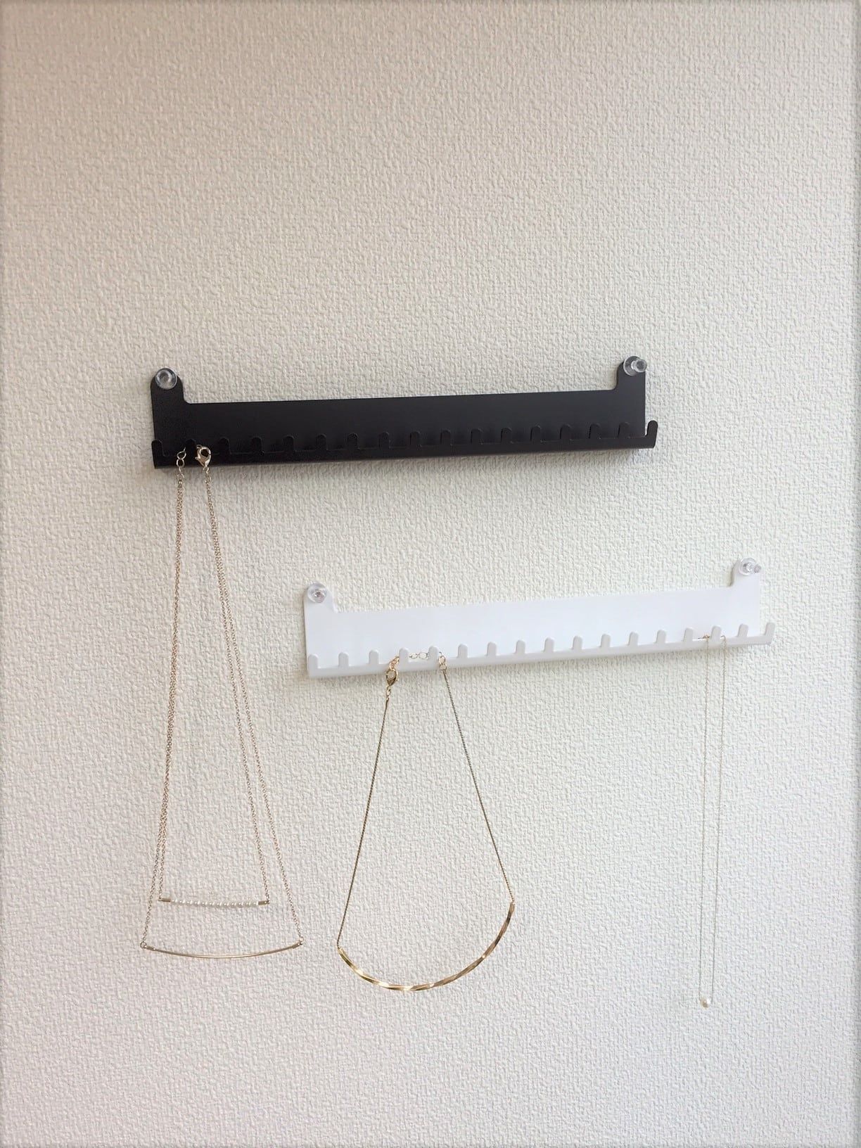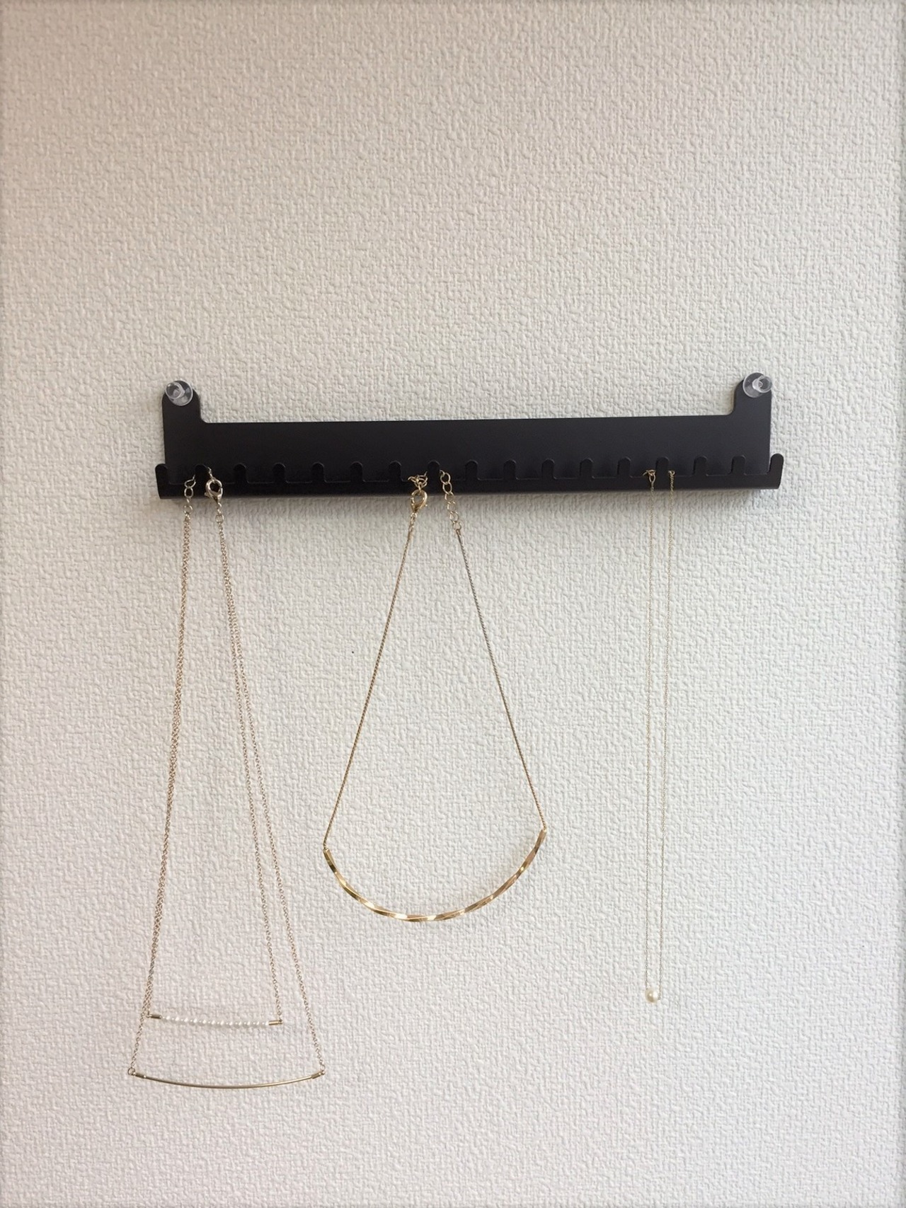 ネックレスなどのアクセサリーが簡単に掛けられるアクセサリー収納です。